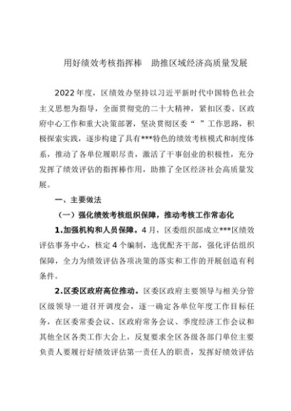 / 2023年度总结∣绩效考核:20230116区绩效办工作总结材料(用好绩效考核指挥棒 助推区域经济高质量发展)