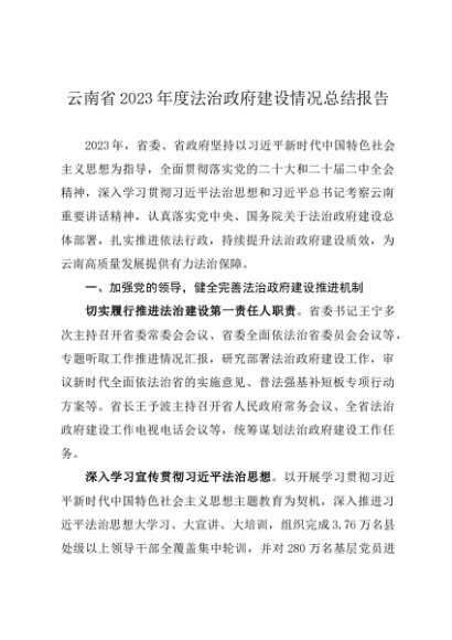/ 2023年度总结∣法治政府:云南省2023年度法治政府建设情况总结报告
