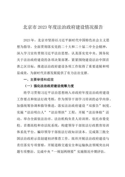 2023年度总结∣法治政府:北京市2023年度法治政府建设情况报告