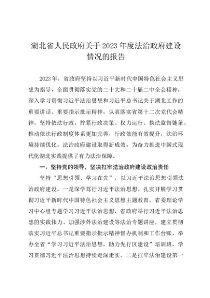 / 2023年度总结∣法治政府:湖北省人民政府关于2023年度法治政府建设情况的报告