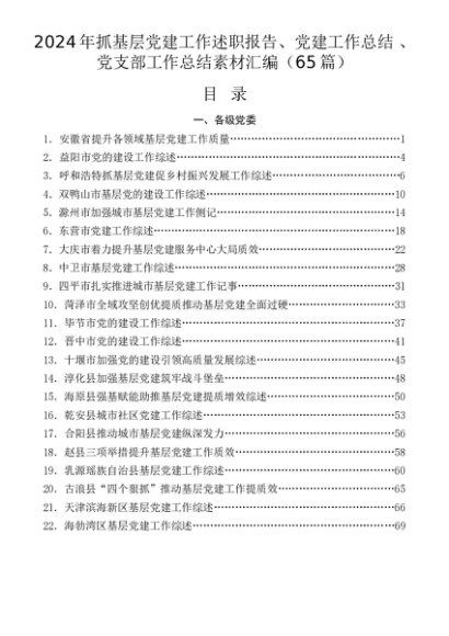 / 2024年度总结∣党建工作:2024年抓基层党建工作述职报告、党建工作总结 、党支部工作总结素材汇编(65篇)