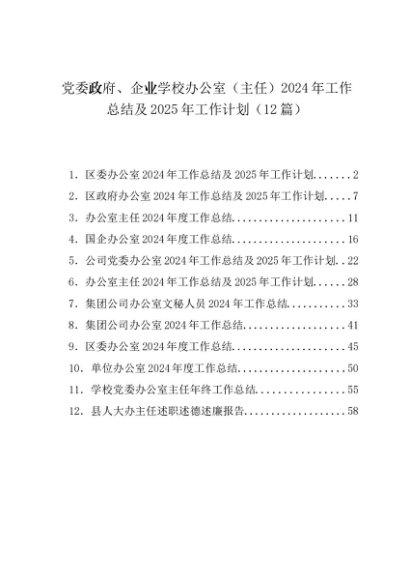 / 2024年度总结∣年终总结:党委政府、企业学校办公室(主任)2024年工作总结及2025年工作计划(12篇)