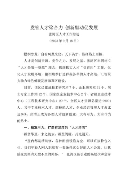 / 2023年度总结∣人才工作:20230918张湾区人才工作综述
