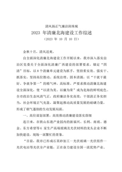 / 2023年度总结∣机关建设:20231010清廉北海建设工作综述