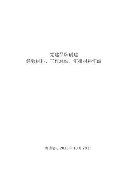 / 2023年度总结∣党建品牌:20231020党建品牌创建经验材料、工作总结、汇报材料汇编(37篇)