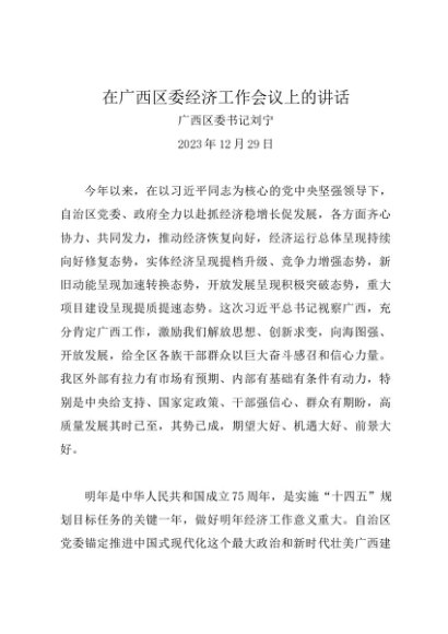 / 党委全会工作报告:20231229在广西区委经济工作会议上的讲话——广西区委书记刘宁