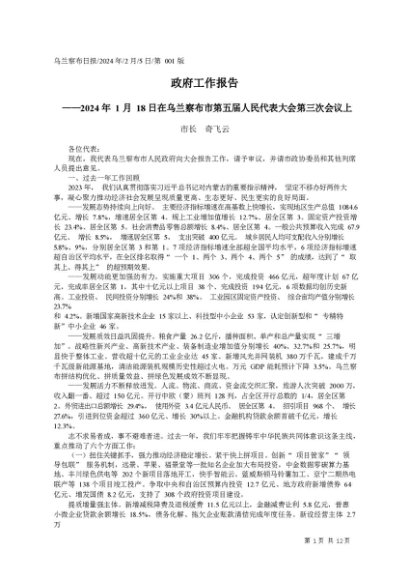 / 政府工作报告:2024年乌兰察布市政府工作报告