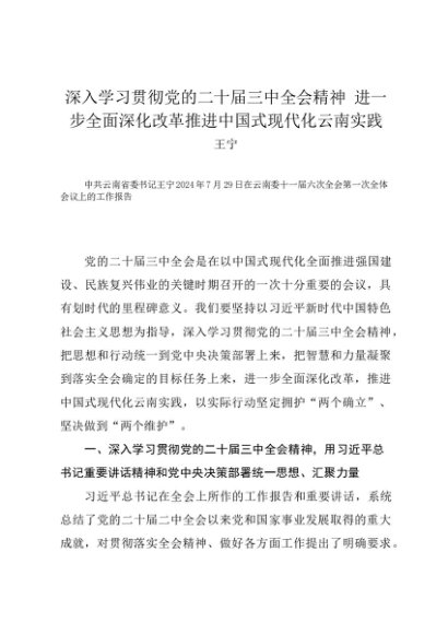 / 党委全会工作报告:20240729云南委十一届六次全会第一次全体会议上的工作报告(学习贯彻二十届三中全会精神)