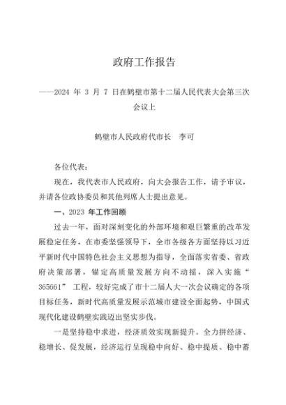 / 政府工作报告:2024年鹤壁市政府工作报告