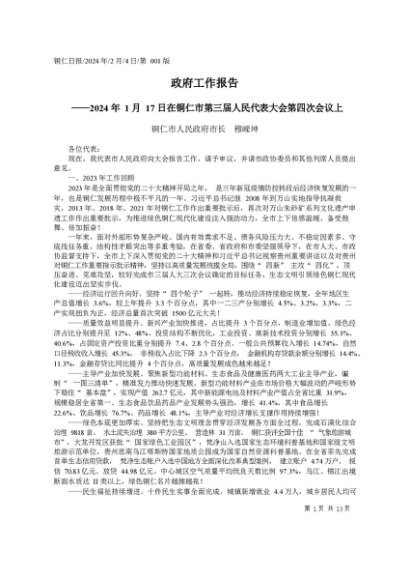 / 政府工作报告:2024年铜仁市政府工作报告