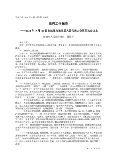 / 政府工作报告:2024年运城市政府工作报告