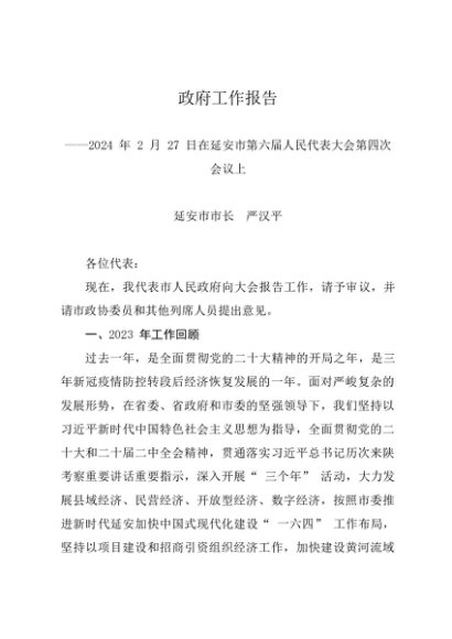 / 政府工作报告:2024年延安市政府工作报告