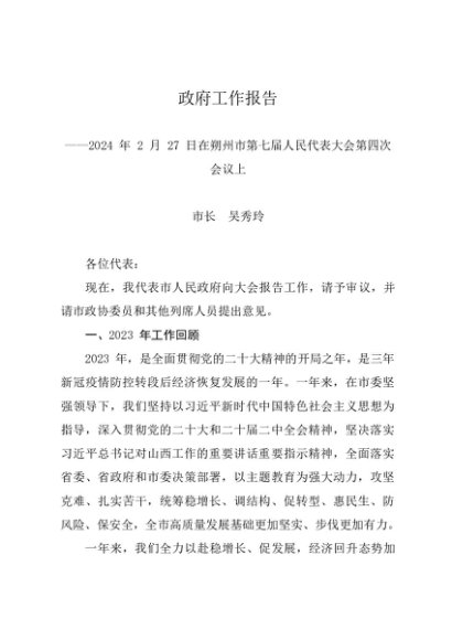 / 政府工作报告:2024年朔州市政府工作报告