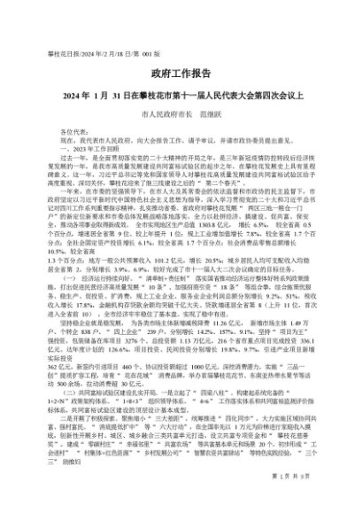 / 政府工作报告:2024年攀枝花市政府工作报告
