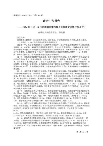 / 政府工作报告:2024年曲靖市政府工作报告