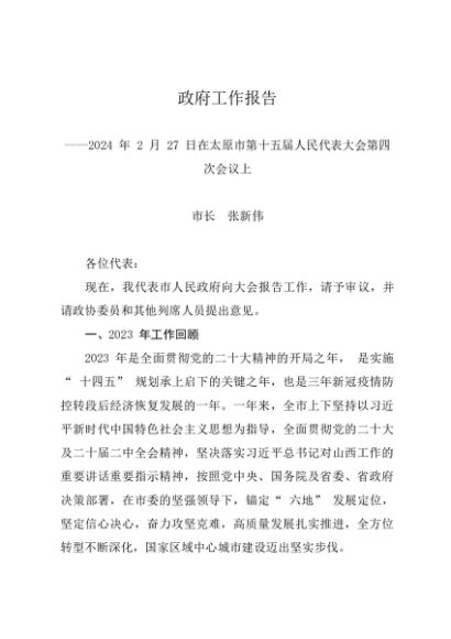 / 政府工作报告:2024年太原市政府工作报告