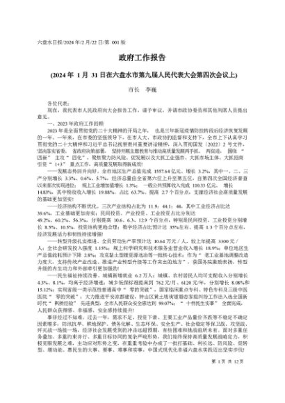 / 政府工作报告:2024年六盘水市政府工作报告