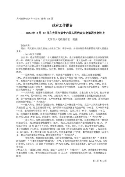 政府工作报告:2024年山西省及所属地市2024年政府工作报告汇编