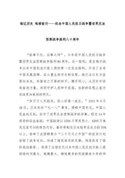 【七哥公文】2025年:【七哥公文】铭记历史 砥砺前行——纪念中国人民抗日战争暨世界反法西斯战争胜利八十周年+更多免费公文+VX:QiGeGongWen2024+更多免费公文+VX:QiGeGongWen2024