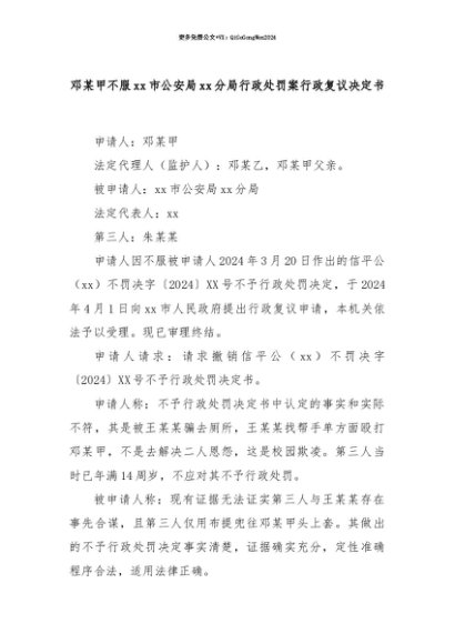 【七哥公文】2025年:【七哥公文】邓某甲不服xx市公安局xx分局行政处罚案行政复议决定书+更多免费公文+VX:QiGeGongWen2024+更多免费公文+VX:QiGeGongWen2024