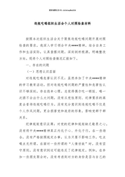 【七哥公文】2025年:【七哥公文】违规吃喝组织生活会个人对照检查材料+更多免费公文+VX:QiGeGongWen2024+更多免费公文+VX:QiGeGongWen2024
