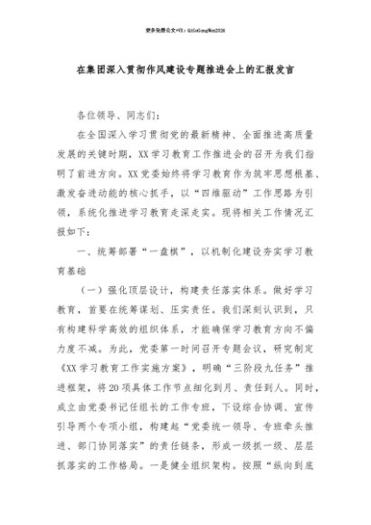 【七哥公文】2025年:【七哥公文】在集团深入贯彻作风建设专题推进会上的汇报发言+更多免费公文+VX:QiGeGongWen2024+更多免费公文+VX:QiGeGongWen2024