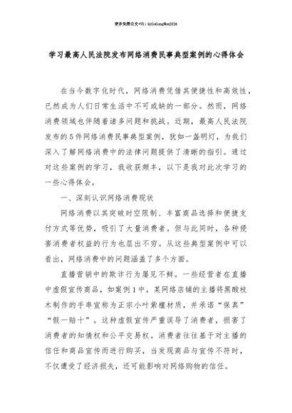 【七哥公文】2025年:【七哥公文】学习最高人民法院发布网络消费民事典型案例的心得体会+更多免费公文+VX:QiGeGongWen2024+更多免费公文+VX:QiGeGongWen2024