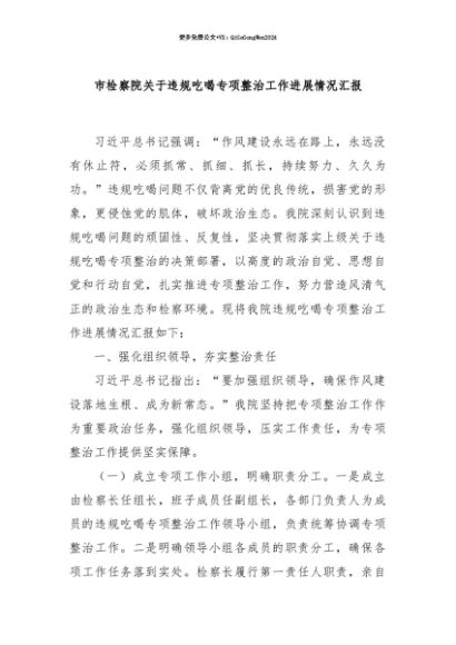 【七哥公文】2025年:【七哥公文】市检察院关于违规吃喝专项整治工作进展情况汇报+更多免费公文+VX:QiGeGongWen2024+更多免费公文+VX:QiGeGongWen2024