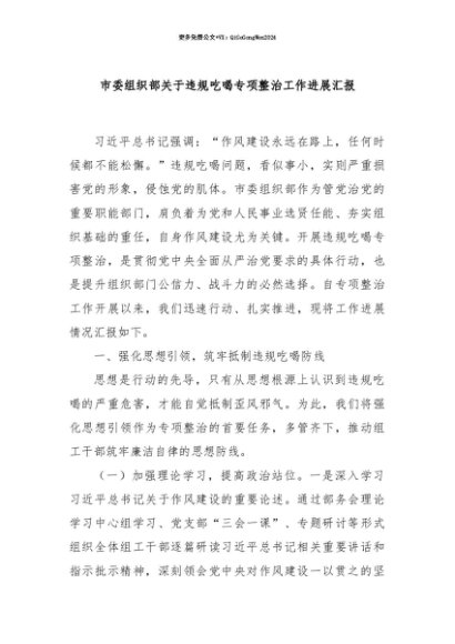 【七哥公文】2025年:【七哥公文】市委组织部关于违规吃喝专项整治工作进展汇报+更多免费公文+VX:QiGeGongWen2024+更多免费公文+VX:QiGeGongWen2024