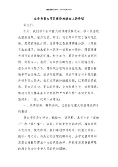 【七哥公文】2025年:【七哥公文】在全市重大项目建设推进会上的讲话+更多免费公文+VX:QiGeGongWen2024+更多免费公文+VX:QiGeGongWen2024