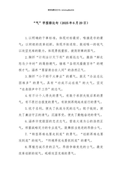 【七哥公文】2025年:【七哥公文】“气”字型排比句(2025年6月29日)+更多免费公文+VX:QiGeGongWen2024+更多免费公文+VX:QiGeGongWen2024