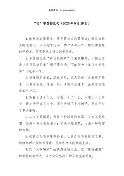 【七哥公文】2025年:【七哥公文】“而”字型排比句(2025年6月28日)+更多免费公文+VX:QiGeGongWen2024+更多免费公文+VX:QiGeGongWen2024