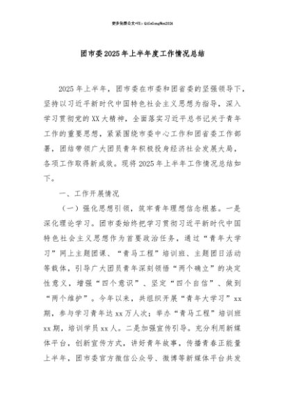 【七哥公文】2025年:【七哥公文】团市委2025年上半年度工作情况总结+更多免费公文+VX:QiGeGongWen2024+更多免费公文+VX:QiGeGongWen2024