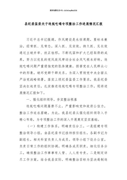 【七哥公文】2025年:【七哥公文】县纪委监委关于违规吃喝专项整治工作进展情况汇报+更多免费公文+VX:QiGeGongWen2024+更多免费公文+VX:QiGeGongWen2024