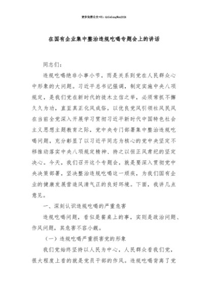 【七哥公文】2025年:【七哥公文】在国有企业集中整治违规吃喝专题会上的讲话+更多免费公文+VX:QiGeGongWen2024+更多免费公文+VX:QiGeGongWen2024