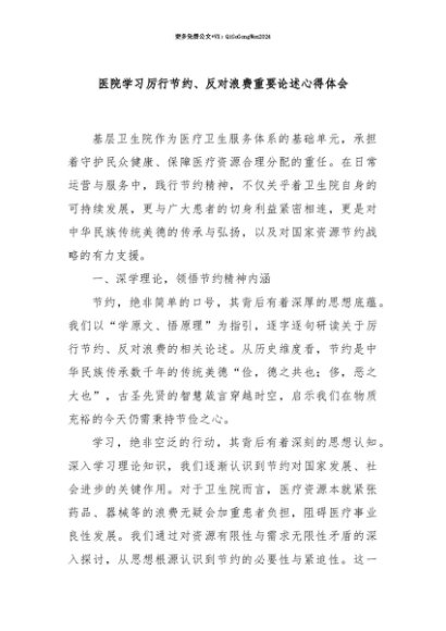 【七哥公文】2025年:【七哥公文】医院学习厉行节约、反对浪费重要论述心得体会+更多免费公文+VX:QiGeGongWen2024+更多免费公文+VX:QiGeGongWen2024