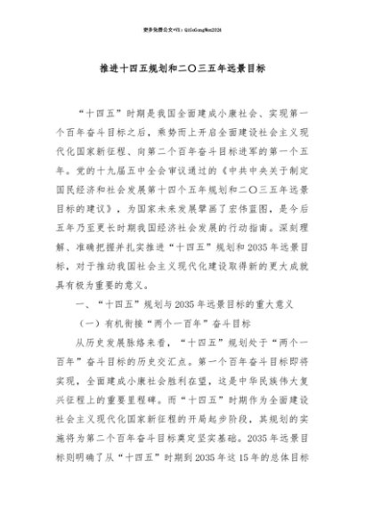 【七哥公文】2025年:【七哥公文】推进十四五规划和二〇三五年远景目标+更多免费公文+VX:QiGeGongWen2024+更多免费公文+VX:QiGeGongWen2024