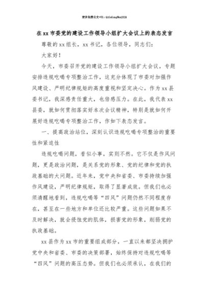 【七哥公文】2025年:【七哥公文】在xx市委党的建设工作领导小组扩大会议上的表态发言+更多免费公文+VX:QiGeGongWen2024+更多免费公文+VX:QiGeGongWen2024