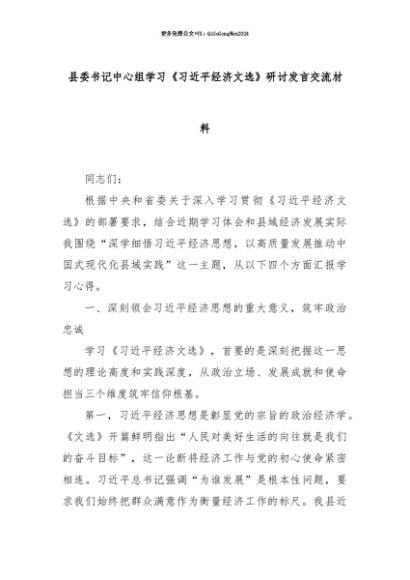 【七哥公文】2025年:【七哥公文】县委书记中心组学习《总书记经济文选》研讨发言交流材料+更多免费公文+VX:QiGeGongWen2024+更多免费公文+VX:QiGeGongWen2024