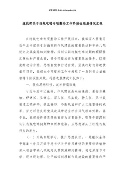 【七哥公文】2025年:【七哥公文】统战部关于违规吃喝专项整治工作阶段性进展情况汇报+更多免费公文+VX:QiGeGongWen2024+更多免费公文+VX:QiGeGongWen2024