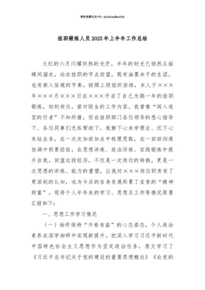 【七哥公文】2025年:【七哥公文】挂职锻炼人员2025年上半年工作总结+更多免费公文+VX:QiGeGongWen2024+更多免费公文+VX:QiGeGongWen2024