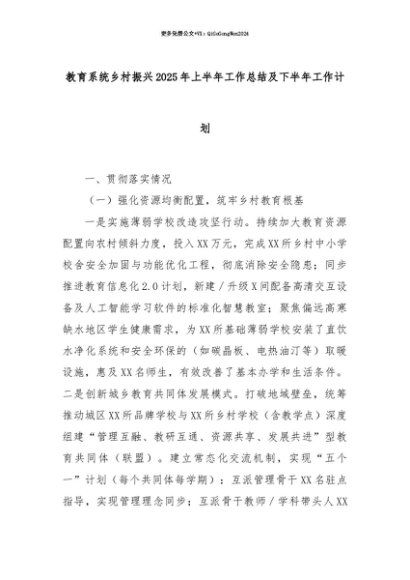 【七哥公文】2025年:【七哥公文】教育系统乡村振兴2025年上半年工作总结及下半年工作计划+更多免费公文+VX:QiGeGongWen2024+更多免费公文+VX:QiGeGongWen2024
