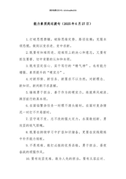 【七哥公文】2025年:【七哥公文】能力素质类过渡句(2025年6月27日)+更多免费公文+VX:QiGeGongWen2024+更多免费公文+VX:QiGeGongWen2024