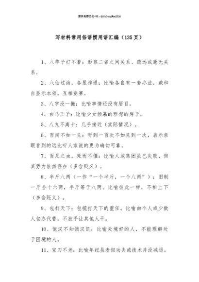 【七哥公文】2025年:【七哥公文】写材料常用俗语惯用语汇编(135页)+更多免费公文+VX:QiGeGongWen2024+更多免费公文+VX:QiGeGongWen2024