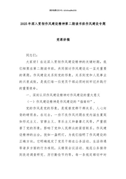 【七哥公文】2025年:【七哥公文】2025年深入贯彻作风建设精神第二期读书班作风建设专题党课讲稿+更多免费公文+VX:QiGeGongWen2024+更多免费公文+VX:QiGeGongWen2024