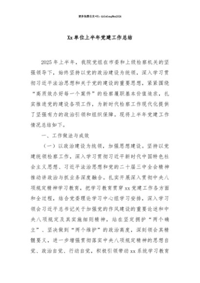 【七哥公文】2025年:【七哥公文】Xx单位上半年党建工作总结+更多免费公文+VX:QiGeGongWen2024+更多免费公文+VX:QiGeGongWen2024