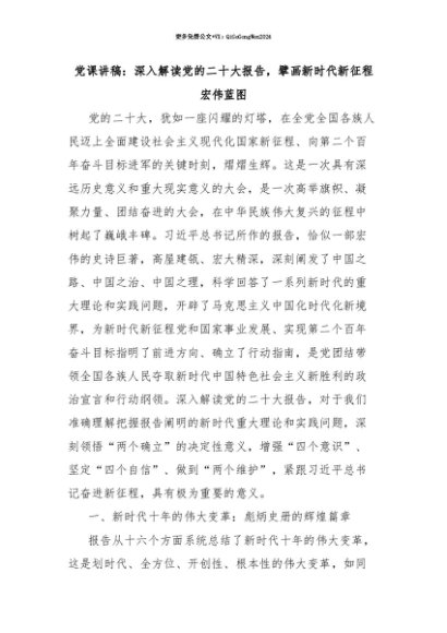 【七哥公文】2025年:【七哥公文】党课讲稿:深入解读党的二十大报告,擘画新时代新征程宏伟蓝图+更多免费公文+VX:QiGeGongWen2024+更多免费公文+VX:QiGeGongWen2024