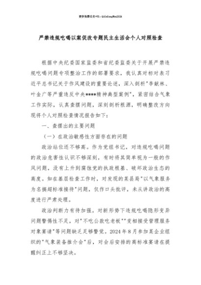 【七哥公文】2025年:【七哥公文】严禁违规吃喝以案促改专题民主生活会个人对照检查+更多免费公文+VX:QiGeGongWen2024+更多免费公文+VX:QiGeGongWen2024