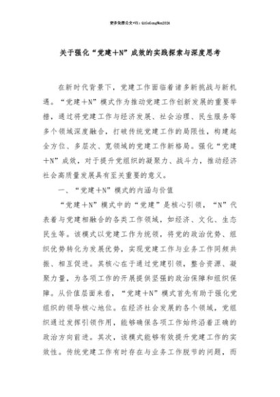 【七哥公文】2025年:【七哥公文】关于强化“党建+N”成效的实践探索与深度思考+更多免费公文+VX:QiGeGongWen2024+更多免费公文+VX:QiGeGongWen2024