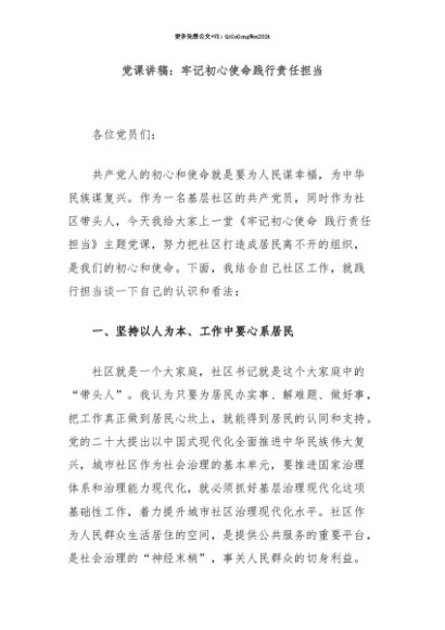 【七哥公文】2025年:【七哥公文】党课讲稿:牢记初心使命践行责任担当+更多免费公文+VX:QiGeGongWen2024+更多免费公文+VX:QiGeGongWen2024